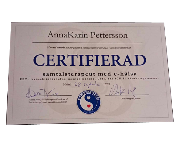 Utbildningsansvarig är innehavare av ECP – European Certificate of Psychotherapy.